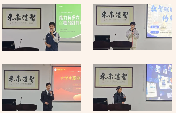 同学们的展示既体现了立足专业领域锤炼本领的清醒认知,又饱含将个人理想融入党和国家事业的赤诚情怀,充分彰显了新时代大学生在职业探索中求真务实的创新精神、勇挑重担的担当意识。他们用青春视角勾勒职业蓝图,用坚定信念描绘奋斗征程,生动展现了当代青年“怀抱梦想又脚踏实地,敢想敢为又善作善成”的精神风貌,为这场党建引领下的职业规划盛会注入了振奋人心的青春力量。